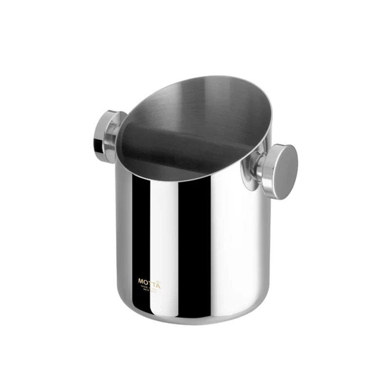 Mit dem Abschlagbehälter von Motta können Sie ganz leicht das zusammengedrückte Kaffeepulver, den Puck, aus Ihrem Siebträger entfernen. Der Abschlagbehälter vom italienischen Hersteller Motta hat einen Durchmesser von 10,5 cm und eine Höhe von 15 cm. Die Abschlagbox wird aus hochwertigen und langlebigen sowie robusten Edelstahl hergestellt. Der Abschlagbalken sowie der Boden des Abschlagbehälters sind mit Gummi überzogen. Dieses gewährleistet ein leiseres und schonenderes Abschlagen des Espressosatzes. Durch den Gummiüberzug wird der Siebträger geschont und das Verrutschen des Abschlagbehälters unterbunden. Für die Reinigung lässt sich der Abschlagbalken einfach abschrauben und entnehmen.