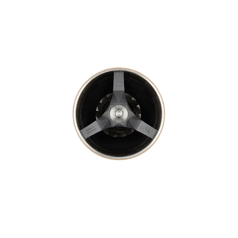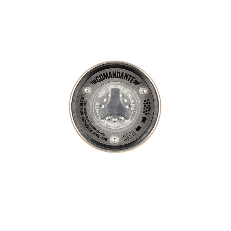 Optisch ist die Mühle schlicht, hochwertig und elegant. Der Kurbelknauf der C40 MK4 Nitro Blade American Cherry ist aus Eichenholz und durch den Druckverschluss abnehmbar. Die C40 MK4 Nitro Blade American Cherry von Comandante ist ideal auch für unterwegs, da sie leicht und unzerbrechlich ist. Ein weiteres Upgrade der Mühle: Durch die sogenannte eingebaute „Pflug Aktion“kommt es zu keiner Bohnenfalle rund um die Achse und es kommt nicht mehr zu eingeklemmten Bohnen beim Mahlen.