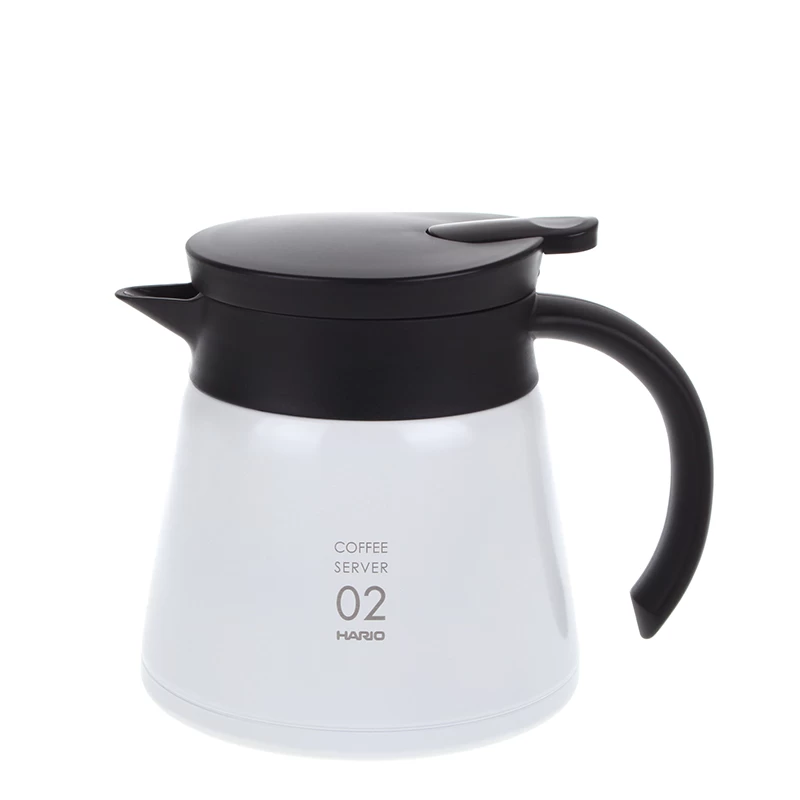Hario hat mit dieser Isolierkanne eine Lösung entwickelt, wie Sie ihren handgebrühten Kaffee über einen langen Zeitraum bei perfekter Trinktemperatur genießen können. Sie können die Hario V60 Coffee Dripper mit der Filtergröße 02 (2-4 Tassen) direkt auf die Isolierkanne positionieren und ihren Kaffee per Hand aufbrühen. Die Isolierkanne ist komplett aus hochwertigem Edelstahl gefertigt und in einem schönen matten Weiß gehalten. Das Servieren ist mit einer Hand und ganz ohne lästiges Tropfen möglich. Das Fassungsvermögen beträgt circa 550 ml und eignet sich so ideal zum Mitnehmen für die Arbeit, oder für ein nettes Gespräch mit ihren Freunden. Nicht Spülmaschinengeeignet