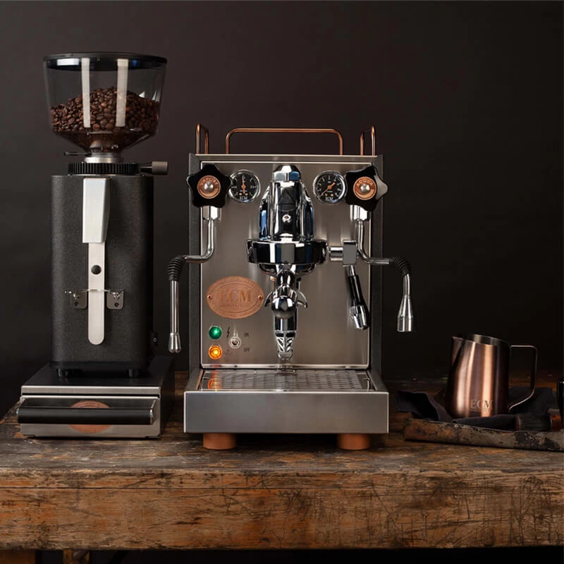 Die ECM S-Manuale 64 ist eine bewährte Espressomühle des Heidelberger Herstellers von hochwertigen Espressomaschinen und -mühlen. Die großen 64 Millimeter Mahlscheiben aus Edelstahl mahlen zuverlässig und schnell die gewünschte Menge Bohnen direkt in den Siebträger. In der Heritage Line Ausführung kommt die ECM S-Manuale 64 in einem pulverbeschichteten Edelstahlgehäuse in anthrazit und mit der Mahlgradskala sowie dem rückseitigen ECM-Emblem in Kupferfarben.