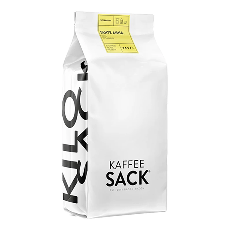 Anfang des Jahres wurde der Filterkaffee Tante Anna mit Gold von der deutschen Röstergilde ausgezeichnet. Dieser Filterkaffee in der 1000 g Version verlässt, wie auch die anderen Produkte aus der Rösterei Kaffeesack, nur wenige Tage nach dem Rösten die Manufaktur in Achern, Baden Württemberg, so garantieren es die Macher:innen. Die besonderen Namen der der einzelnen Produkte sind ein freudiges i-Tüpfelchen, das auf jeden Fall zum Hingucker wird.