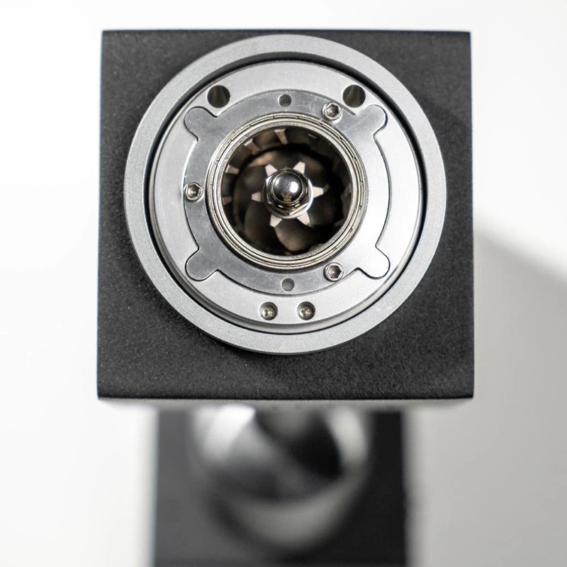 Mit seiner aktualisierten Baugruppe und verbesserter Ausrichtung sowie Konzentrizität der Antriebswelle und des Fräsersatzes, können Sie sich sicher sein, dass Sie jedes Mal perfekte Ergebnisse erzielen werden. Die bearbeitete Antriebswelle mit einer Toleranz von 0,015 mm und doppellagigen Kugellagern der Klasse P5 sorgen für reibungslose Bewegungen und erhöhen die Stabilität des Geräts. Die harten Kammer-Premium-Federn dämpfen Vibrationen und erhöhen die Konsistenz. Die VS3 in der 2. Generation ist das perfekte Werkzeug für alle, die Wert auf eine präzise und gleichmäßige Partikelverteilung legen. Mit einem einteiligen Außengrat aus Edelstahl bietet dieses Produkt eine hervorragende Stabilität und Ausrichtung, um eine optimale Mahlleistung zu gewährleisten. Die Silikonfüße am Boden des Gerätes sorgen zusätzlich für eine hohe Standfestigkeit. Am Trichterdeckel befinden sich Magnete, die einen sicheren Halt auf dem Trichter bieten. Auch der Dosierbecher steht magnetisch auf dem Sockel.